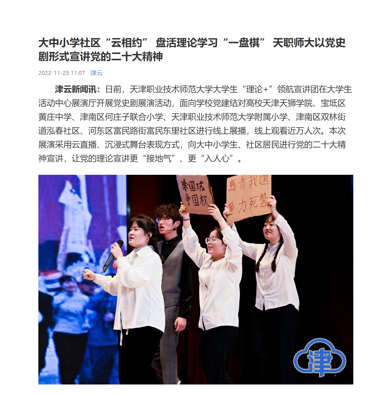 津云:大中小学社区“云相约” 盘活理论学习“一盘棋” 天职师大以党史剧形式宣讲党的二十大精神